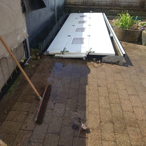 Hörmann hvid ledhejseport monteret i 2520 x 2090 garageåbning.