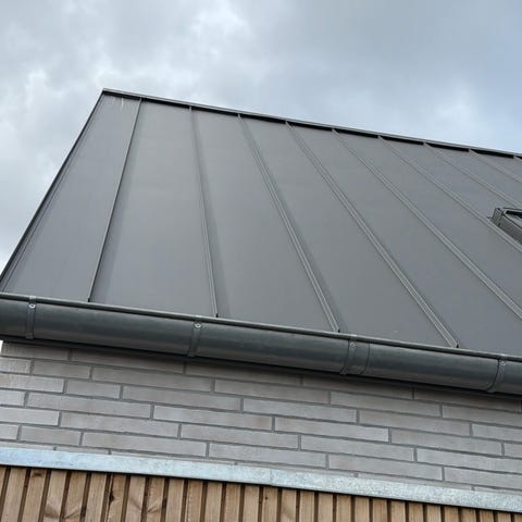 Sælger et komplet parti originale VM Zinc arkitekttagrender (str. 333) inkl. nedløb Ø76 mm.