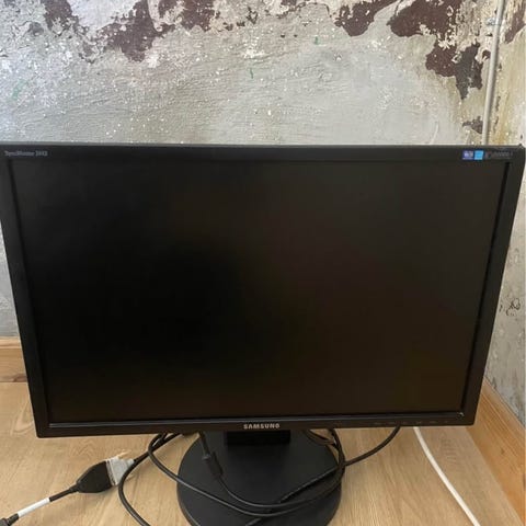 Skærmen fremstår i fin stand (mindre ridse i venstre side). Den virker som den skal.