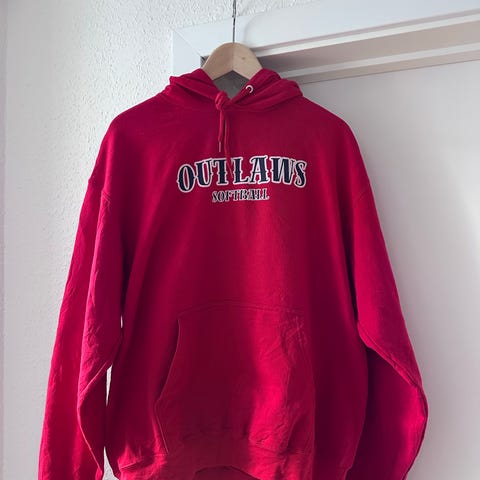 Rød Gildan Heavy Blend hættetrøje i str XL med Brodhead Cardinals State print foran. Har kængurulomme og tryk på både for- og bagside.