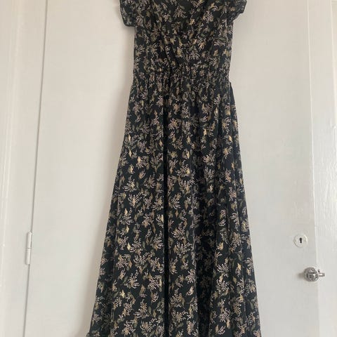 Smuk sort stropkjole - sommerkjole med beige blomster og smocksyning.