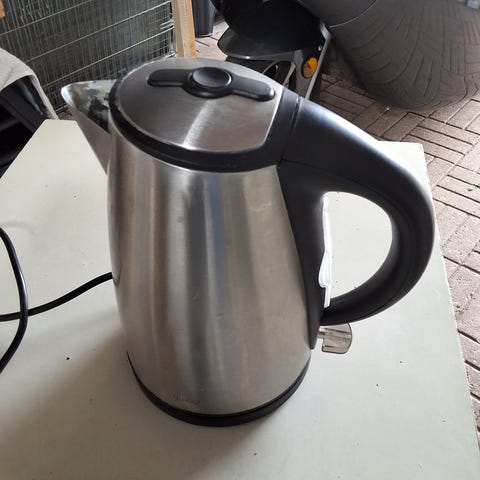 OBH Nordica elkedel 0.5L i rustfrit stål med sort håndtag og låg. Har hældetud og ledning med almindeligt stik.