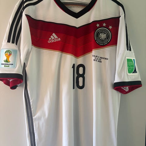 Den har små pulls, men er velholdt og med original spiller-tryk.