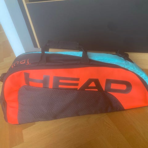 HEAD sportstaske i blå og sort med 2 store hovedrum. Indvendig lynlås lomme og 2 udvendige lommer til grip, svedbånd og diverse småting. Størrelse L. Har bærehåndtag.