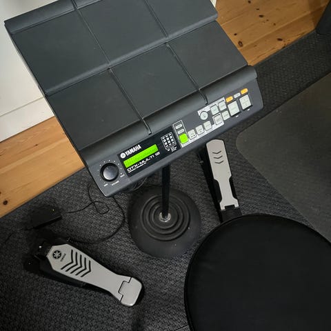 Roland elektronisk trommepad med 8 gummipads på toppen. Har forskellige tilslutninger på siden til fx strøm, lyd og pedaler.