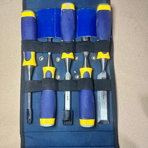 Bahco stemmejern sæt med ergonomiske håndtag i praktisk trææske. Flere forskellige bredder, alle med beskyttelseshætter på æggen.
