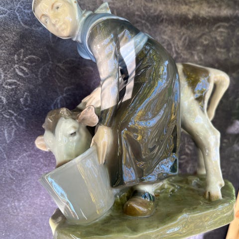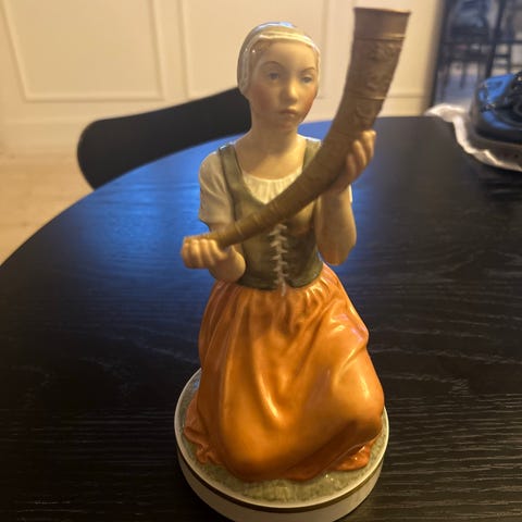 Else på cykel m.hund., Royal Copenhagen, motiv: Else på trehjulet cykel, med hund på lad., Figur Else på trehjulet cykel, med hund på lad. Figuren er 1.sortering, og "den" er udgået af produktion. Figuren er som ny, men jeg har fornyligt fundet et lille glasurskrab på et af de bagerste cykelhjul. Figuren har kun stået I et glasskab. Prisen er sat, efter den meget lille "skade", men kom gerne med et fair bud, hvis du er interesseret.