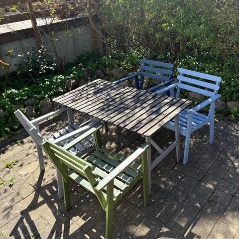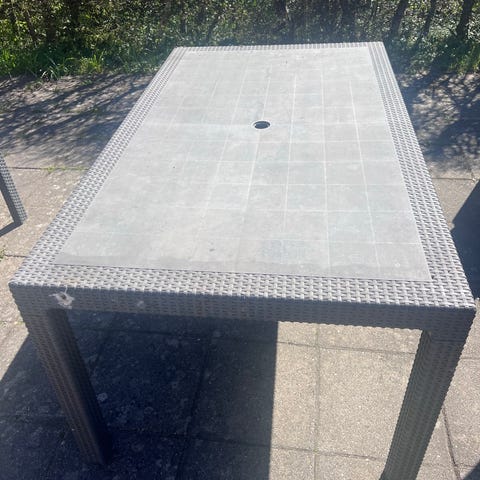Havemøbler i træ og alu med flet. Gives væk. OK stand. Først til mølle. Reserveres ikke. Skriv, hvornår du kan hente det. Så er det først til mølle.