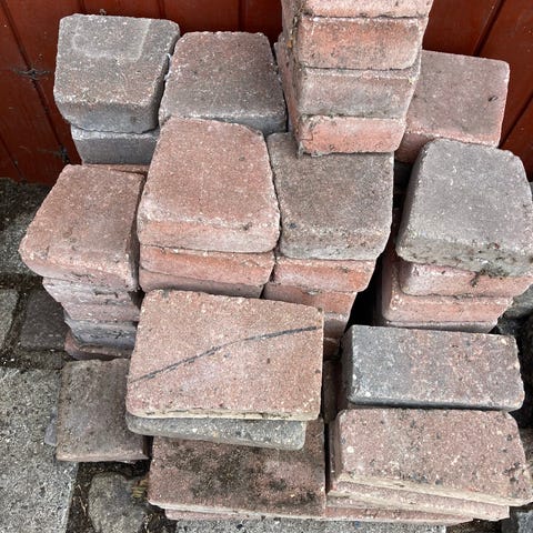 168 stk rødmix havefliser str 24 cm x 8 cm = 3,7 m2 sælges.