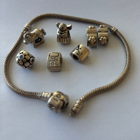 Pandora armbånd m. charms – 18 cm – ægte sølv (925)
