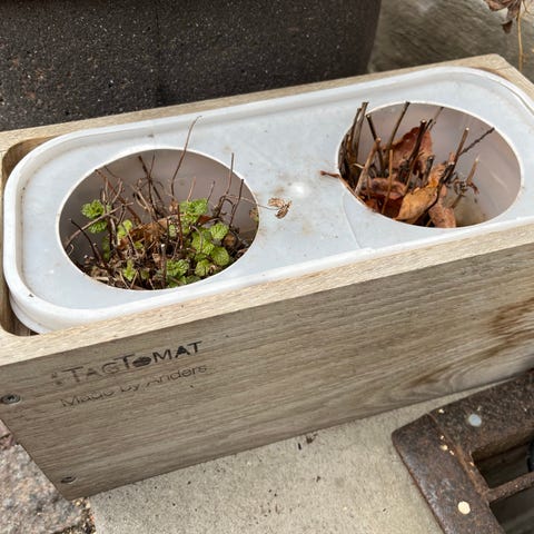 Lækker dørmåtte i lyst træ med lameller. Fin som måtte ved hoveddør eller altan.