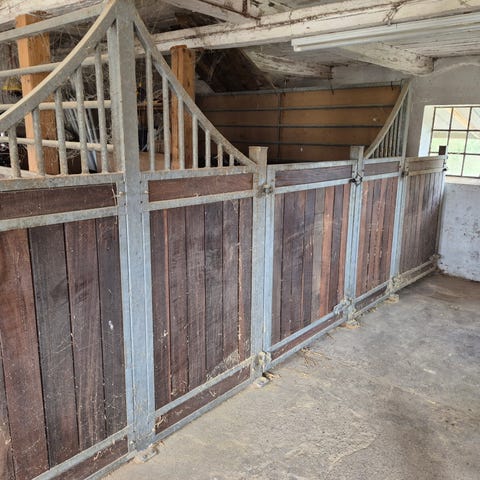 Stald med fleksible hestebokse i metal og plader, alle med døre ud mod gang. 7 bokse på række og god bred gang imellem til trillebør og udstyr. 28 bokse der er isoleret rustfrie rør med varme og div drikke kopper og krybber bokse er 3 x 3 meter sælges helst samlet giv gerne et bud vh per 40508716