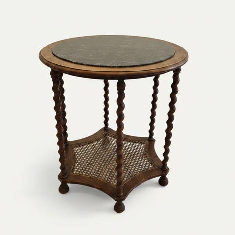 Fint lille sofabord, sidebord i sort stål og lyst fransk flet.