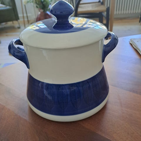 Rørstrand, Elisabeth, Terrin med låg. Diameter 18 cm uden hanke. Højde 12 cm.