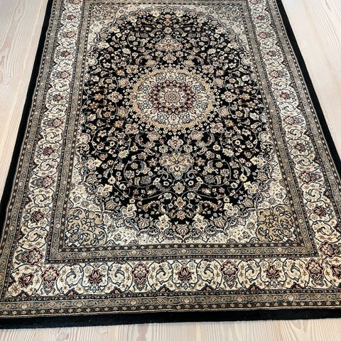 Jotex tæppe i grå og sort med firkantet mønster. Har kraftig kant hele vejen rundt og er fladvævet, så det er nemt at holde rent.