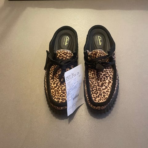 Sneakers fra & Other Stories i str 36 med leopardmønster og sort sål. Har rynkedetalje over foden og lakdetalje bagpå hælen.