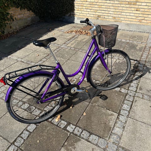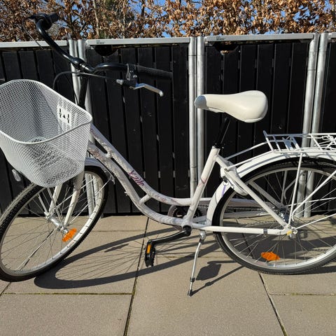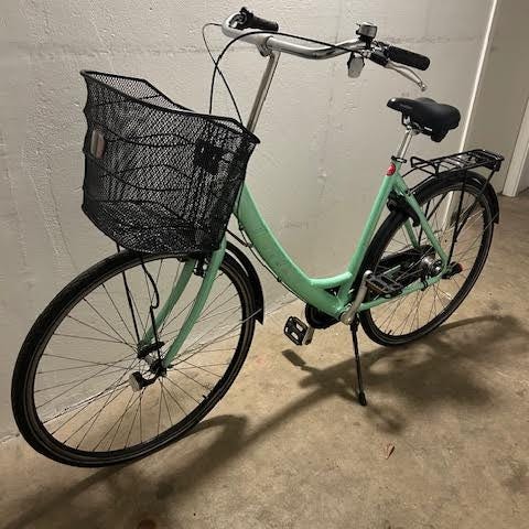 Pigeckel shopper 26" og 43 cm stel med cykelkurv og cykelhjelm samt alt tilbehør i meget god stand. Brugt meget lidt er med 3 indvendige gear fra Shimano Nexus