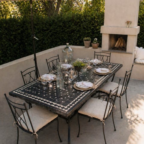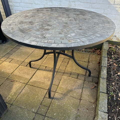 Pænt og velholdt marrokansk mosaik havebord Ø120