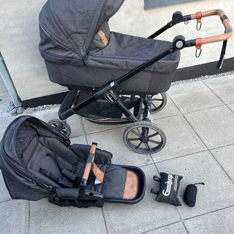 Emmaljunga kombivogn barnevogn/klapvogn i mørkegrå