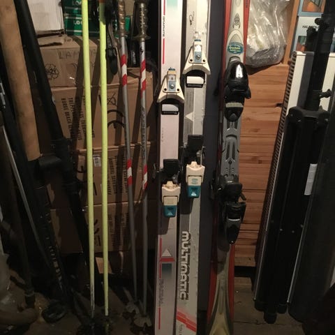 Pris 200 kr. er pr. par. Flere par ski fra Atomic, Fischer og Elan med justerbare bindinger Forskellige længder