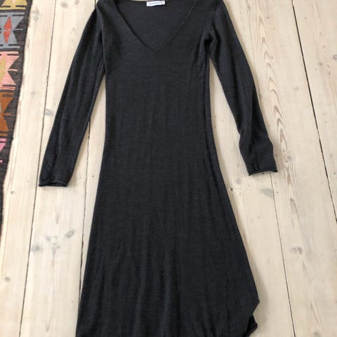Beige/ lys brun elastik ( kropsnær) blød LANG strik kjole. Med slids i begge sider.