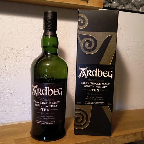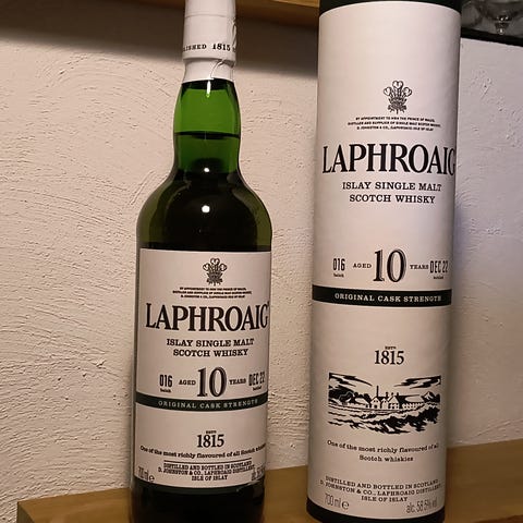 The GlenAllachie 10 års cask strength single malt whisky på 58,6% sælges. Batch 10. Flaske på 70 cl med original æske og info om fadstyrke, non chill filtered og uden tilsat farve.