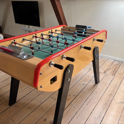 Lækkert, robust, velholdt og klassisk Søren Søgaard bordfodbold sælges. Efter mine sønner er flyttet hjemmefra, får jeg det brugt for lidt - derfor sælger jeg mit fantastiske bordfodbold - det er i super god stand og fungerer perfekt. Interesseret? Så ring eller skriv til 40344839.