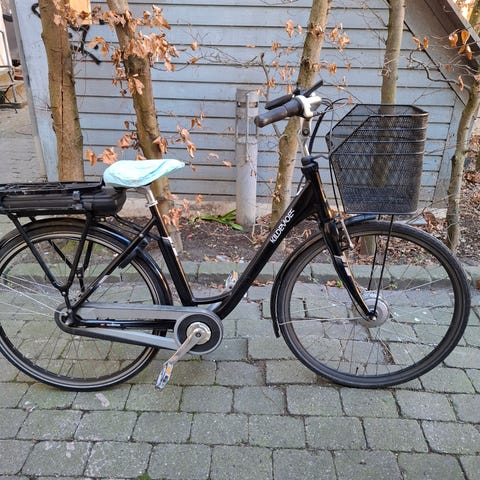 Velfungerende ældre el-cykel (2015). 7 indvendige gear. Forhjulsmotor. Nye baghjulslejer, kæde og bageste tandhjul. Display er revnet kanten. Batteri fungerer fint. Købsbevis haves.