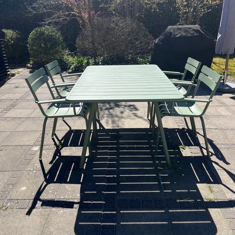 Stolene er i fin stand, men bordet har en del brugsspor (ridser/skygger) men fuld funktionalitet.