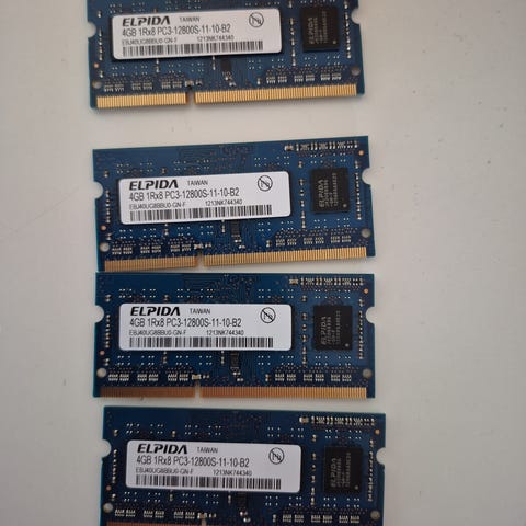 To Samsung DDR3 SO-DIMM RAM moduler på 4GB hver til bærbar pc.