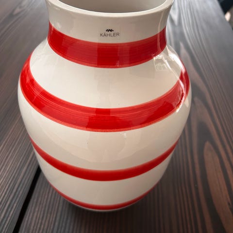 Kähler Omaggio vase med røde striber. Fin som bordvase til blomster eller grene.