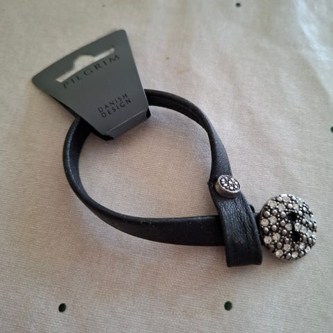 Fint sort flettet læder halskæde med stålled og rhinsten i midten. Magnetlukning i stål, nemt at tage af og på.