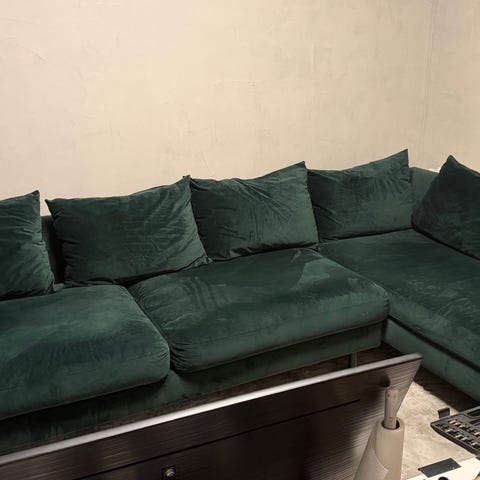 Meget få brugsspor men ingen tydelig tegn på slid i stoffet.