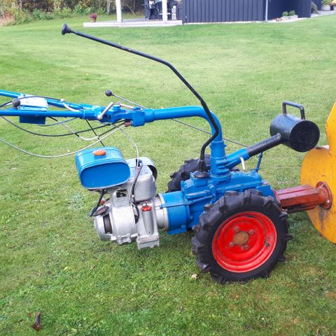 Intermotor LA490 14 hk. benzinmotor sælges, fræser. Der følger en separat blå kost med gode gule børster. Benzin hane/tilslutning til tank, er knækket, se foto.