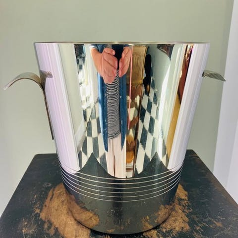 Flot vinkøler / isspand fra WMF i rustfrit stål. Har ringhåndtag i siden og tyk kant foroven.