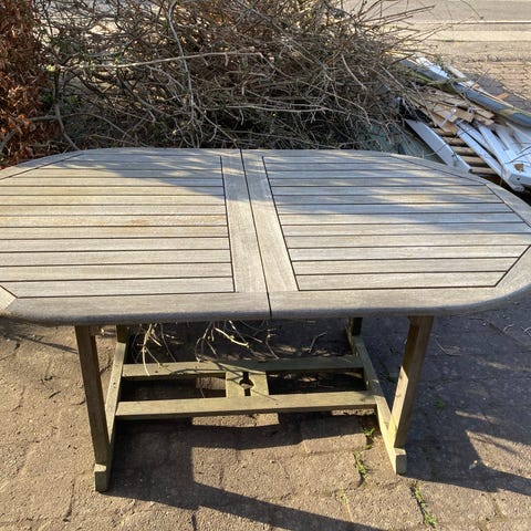 Elegant - og solidt - havebord fremstillet af oprindeligt og meget tung teak.