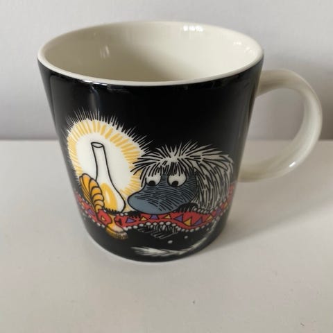 Porcelæn, Krus, kop, Mumi by Arabia, Mumi far tænker, sort, 1999-2013, 30 cl, helt nyt, vejer 249 gram.