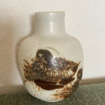 Art deco miniature vase i jernporcelæn fra Royal Copenhagen, fremstillet mellem 1929 og 1950.