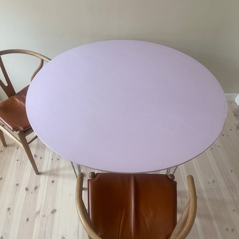 Rundt spisebord med 4 stole fra Nimara. Jeg har haft begge i 6 måneder ca.