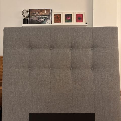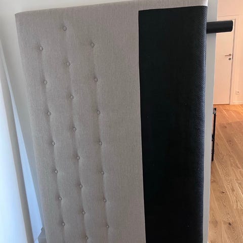 Sengegavl lys beige 140cm bred, 124cm høj, kun 2 år gammel, trænger til lettere rengøring, fejler intet, sælges billigt grundet flytning. Hurtig afhentning prioriteres.