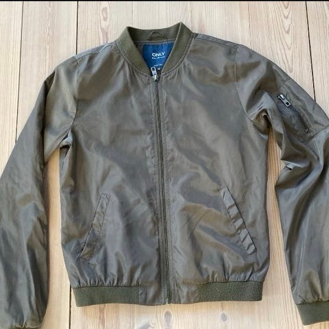 Rød Zara bomberjakke i str M i polyester med lynlås foran og to trykknaplommer. Har ribkant ved hals, ærmer og bund samt quiltet foer og lomme på ærmet med lynlås.