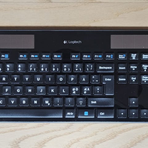 Slim og stilrent trådløst tastatur fra Logitech. Drives af lys (sol/lampe), så du slipper for batteriskift.