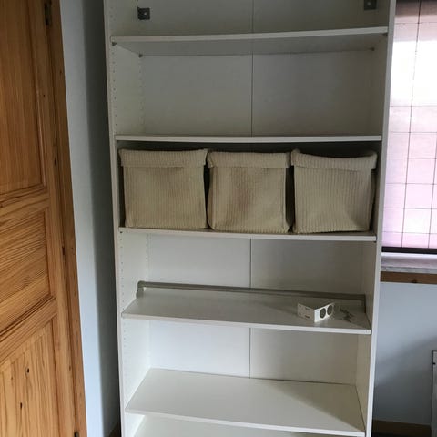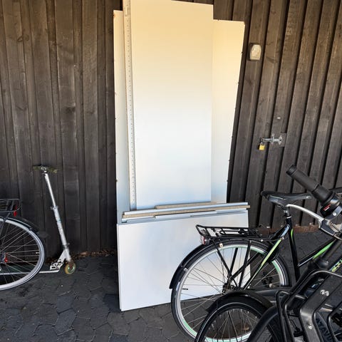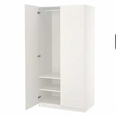 Næsten nyt PAX skab. Super fin stand uden mærker eller skrammer. Sælges med skuffe og to hylder. Obs - Skabet er skåret til i begge sider så det passede over gulvlisterne (se billede).