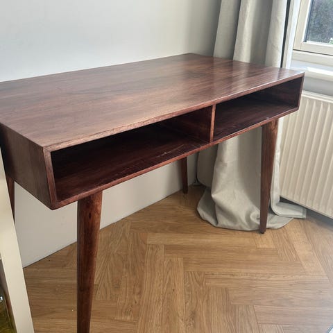 Skrivebord i naturtræ, hvid bordplade,god stand
