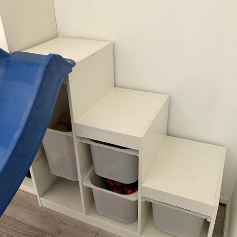 IKEA opbevaringsreol til børn med plastkasser, hvid