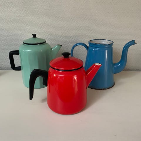 Kockums emalje kaffekande og mælkespand 1,5 L og 2 L creme/grøn