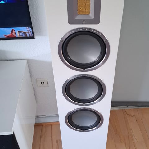 Fantastisk spillende Audiovector 6x. Du er velkommen forbi så du kan lytte til perlerne. Som det kan ses af billederne fejler kanter og ophæng intet. Årsagen til salget er et ønske om opgradering, men jeg må indrømme at jeg er i tvivl om det er den rigtige beslutning.