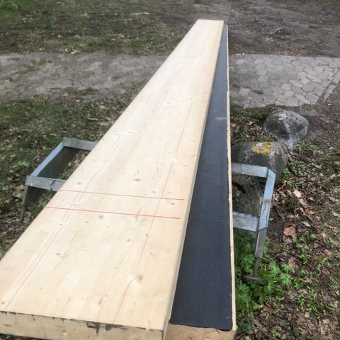 Ikke-bærende betonbjælker fra Xella, mål 249 x 100 x 1800 mm ifølge mærkaten. Ligger samlet og klar til afhentning til dit byggeprojekt.
