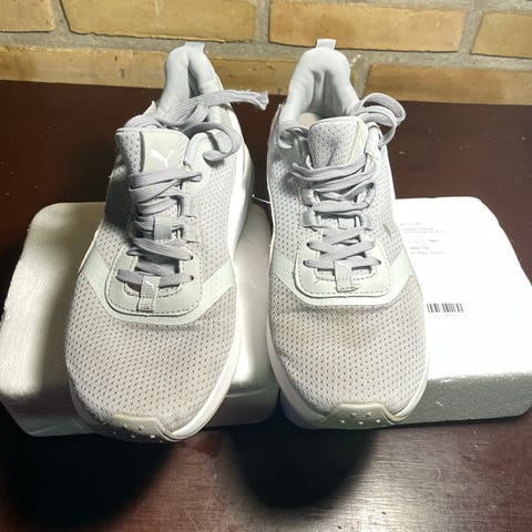 Blå herre Vivobarefoot løbesko i str 41 med snørelukning og let mønstret overdel. Fleksibel sål med små knopper under, der giver godt greb.