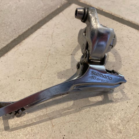 Shimano forreste forskifter til gear på cykel. Monteres med spændebånd omkring stellet og har side-træk til wiren.